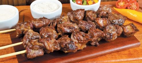 ESPETINHO DE CARNE MOIDA TEMPERADO COM CHEIRO VERDE E QUEIJO. SOMENTE ESPETO.